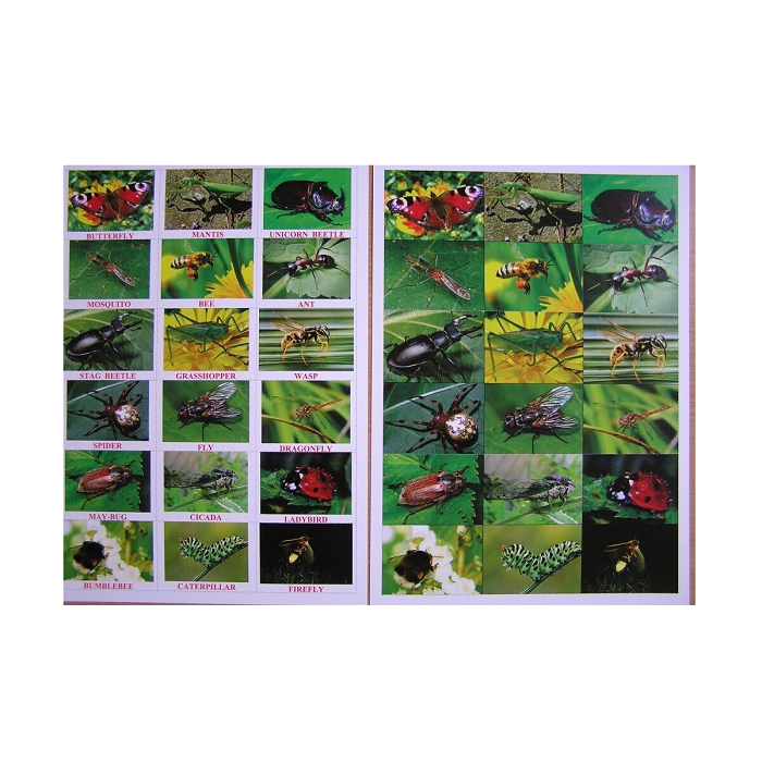 Состав: Butterfly, mantis, unicorn beetle, stag beetle, mosquito, grasshopper, ant, fly, wasp, spider, bee, dragonfly, caterpillar, may-bug, cicada, ladybird, bumblebee, firefly.