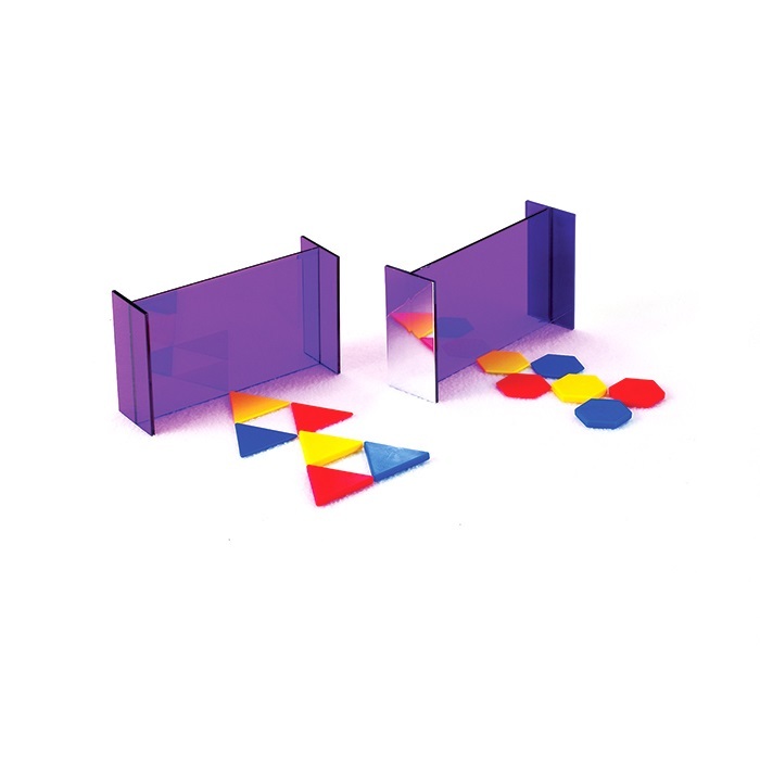 Набор для обучения основам геометрии, а также симметрии, отражению линий, преобразованию и соответствию. Геозеркало сделано как для левшей так и для правшей. Фиолетовый полупрозрачный пластик