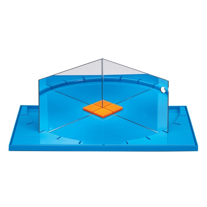 Образовательный набор для изучения основ геометрии, двух- и трех- мерных пространств и отражений, симметрии и ассиметрии. Способствует развитию логики и пространственного воображения. Число изображений, отображаемых в зеркалах, зависит от градуса угла между зеркалами (возможно перемещение зеркал на 360 градусов).