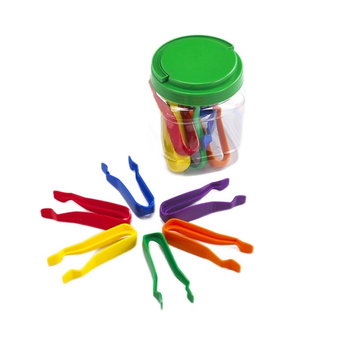 Красочные пинцеты отлично подходят для игр со счетом и сортировкой. Удобны для маленьких рук, совершенствуют мелкую моторику. 6 цветов, длинна 12см, 12 штук в крепкой ПЭТ банке.