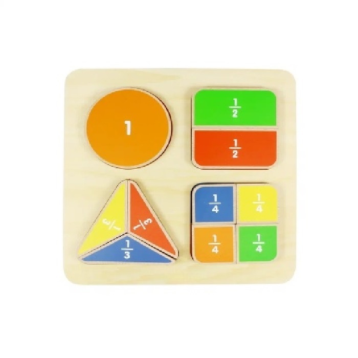 Панель представляет из себя игровое пособие для легкого изучения дробей. С одной стороны блока нанесено цифровое обозначение долей.