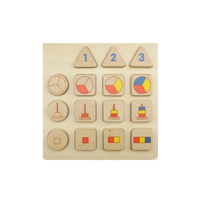 3 треугольных блока в верхнем ряду представляют числа 1, 2 и 3. 3 круглых блока в левом столбце представляют 3 различных представления чисел.Для игры учитель или родитель могут использовать любой из 3 круглых блоков и 3 треугольных блоков и попросить ребенка сопоставить квадратные блоки с цифровыми блоками. Или, чтобы разместить все 3 треугольных блока и все круглые блоки на доске, попросите ребенка разместить все 9 квадратных блоков в правильных местах.Идеальная игрушка для количественного обучения, изучения числовых представлений и развития навыков логического мышления.