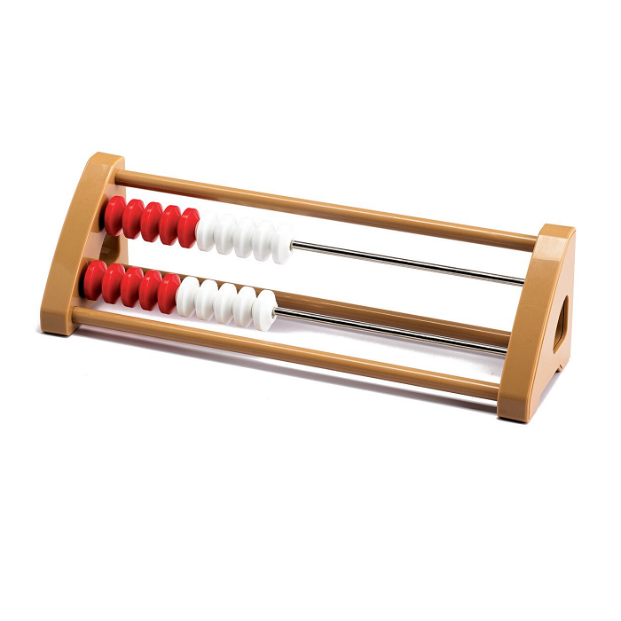 Представляет собой пластиковую рамку с двумя рядами по 10 бисерин, каждая строка состоит из 5 красных и 5 белых шариков.