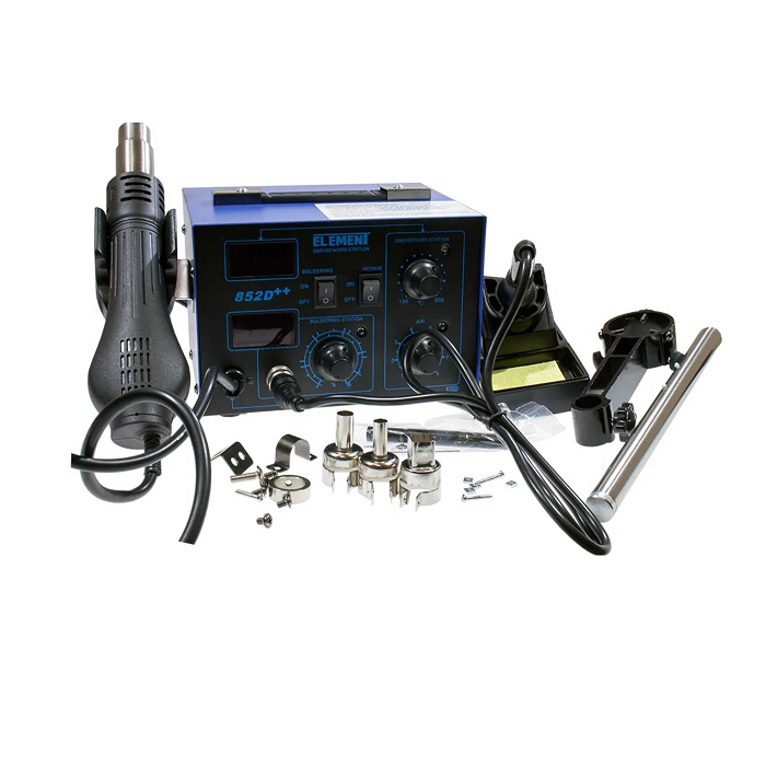 • При отключении питания паяльной станции с держателем фена ELEMENT 852D++ 16553, она самостоятельно охлаждается прогоняя воздух через трубку нагревателя;