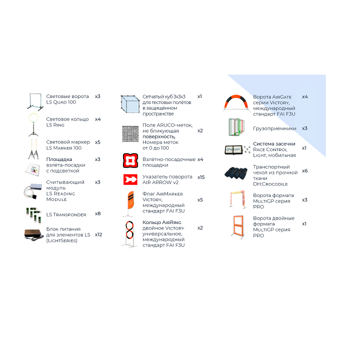 Утвержденный комплект элементов трасс для проведения инженерно-спортивных соревнований, чемпионатов, и реализации учебных программ технических центров, образовательных организаций и Кванториумов по компетенции «Эксплуатация БАС»