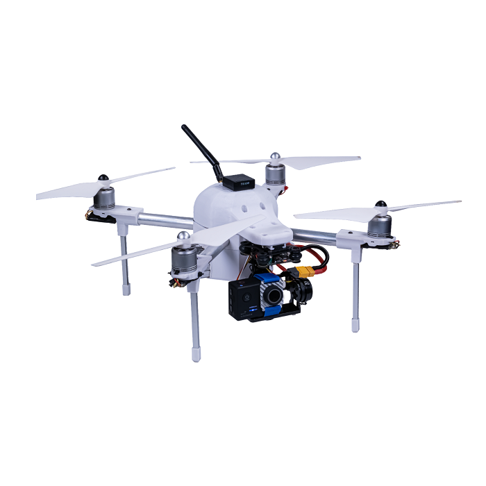 В состав комплекта входит модель квадрокоптера для аэрофотосъемки, оснащенная системой управляемого стабилизируемого подвеса для навесного оборудования, а также системой транспортировки и сброса объектов.