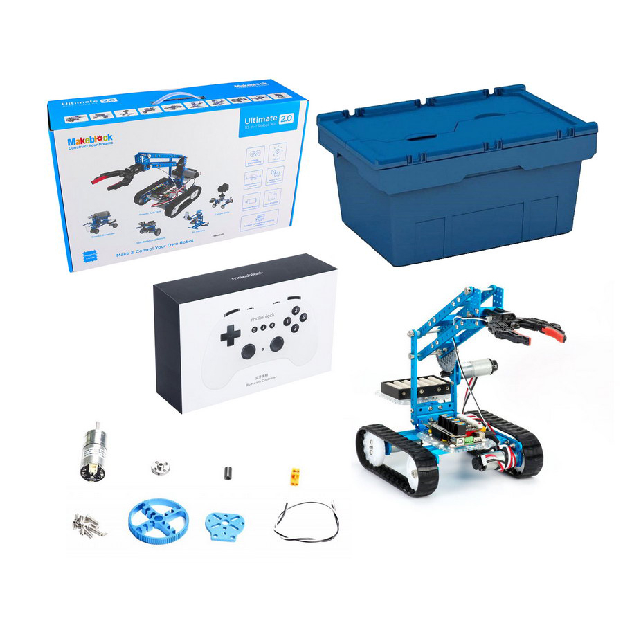 Базовый робототехнический набор для изучения робототехники, конструирования стандартных и проектных модификаций мобильных роботов с контроллером совместимым с Arduino и RaspberryPi. Набор содержит большое количество различных деталей, электронных модулей и расширений для сборки узлов, позволяющих придумать и собрать большое количество различных роботизированных программируемых роботов и систем.