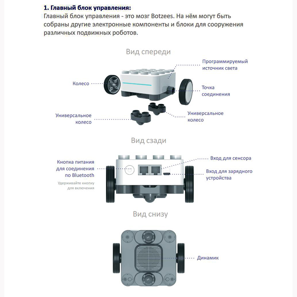 Игровое программирование робота Botzees Classic развивает творчество, терпение, концентрацию и способность к логическому мышлению.