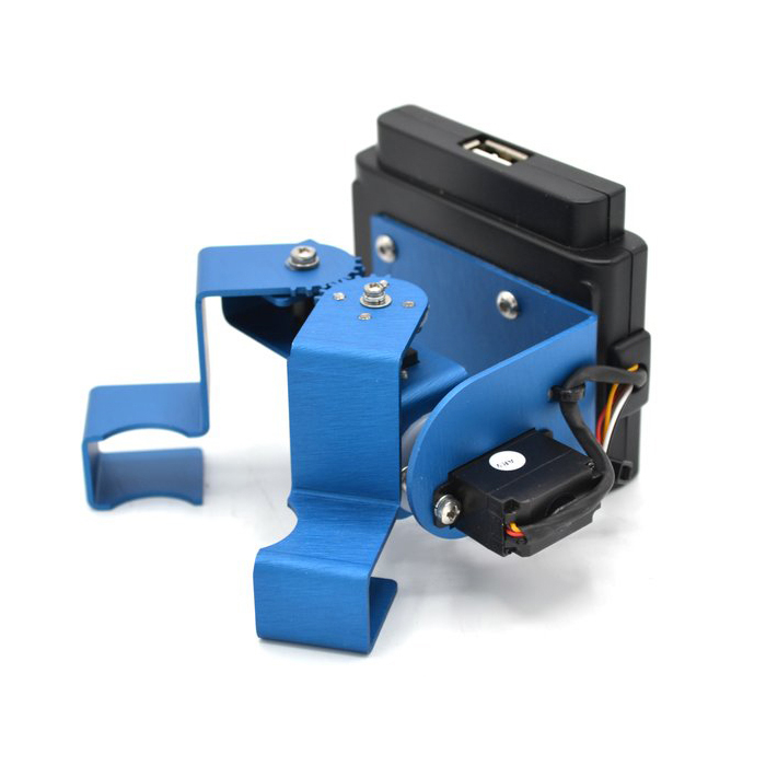 Управляющий модуль захвата предназначен для выполнения программ по захвату и перемещению объектов. Оснащен 2-мя серводвигателями, механической 2-х секционной "рукой" с засхватом.