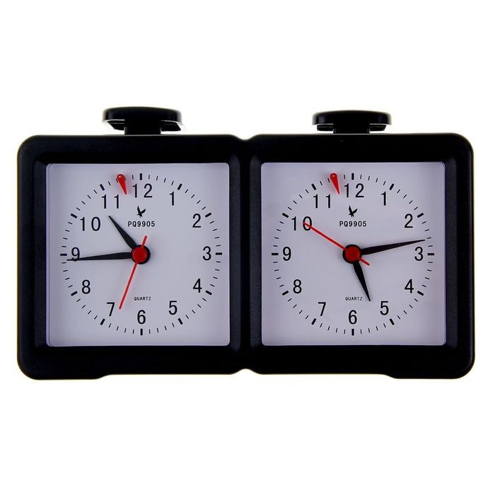 Пластиковые шахматные часы с большими циферблатами. Предназначены для слежения за временем в настольных играх. Можно использовать при игре в шахматы, шашки, го, рэндзю, синци, сёги и другие.